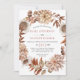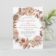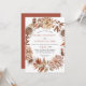 Flores e folhas de outono Convite para casamento outono. Um belo design floral branco que apresenta uma coroa com dalia e rosa e flores e folhagem em cores terríveis. A parte de trás é de cor de argila terracota.