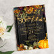 Lindo laranja enferrujado e escuro burgundy outono caem flores e bordas de abóbora com cordas de ouro brilhando sobre um fazer de fundo de madeira marrom-escura um charmoso e elegante convite de aniversário de 50 anos com um roteiro de tipografia dourada de caligrafia. ++++++++ Fácil de personalizar com seus detalhes! Adequado para a rústica tradicional | país | fazenda | reuniões familiares e amigos de quintais exteriores.