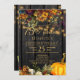Lindo laranja enferrujado e escuro burgundy outono caem flores e bordas de abóbora com cordas de ouro brilhando sobre um fundo de madeira marrom escura fazer elegante e elegante convite de aniversário de 75 anos com um roteiro de tipografia dourada para caligrafia. ++++++++ Fácil de personalizar com seus detalhes! Adequado para a rústica tradicional | país | fazenda | reuniões familiares e amigos de quintais exteriores.