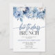 Este é um Convite de festas de Brunch de Flor Azul e Elegante moderno, Dusty Floral Azul.