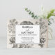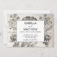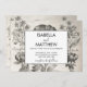 Vintage elegante, mas moderno, flores negras e brancas francesas, antigo convite para o casamento de impressão botânico.