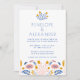 Flores Folclóricas Scandi em Convite para Casamento Azul e Amarelo