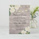 Modelos de Cartão de Convite para Janto de Ensaio de Casamento - Flores de Hydrangea Hydrangea, adoráveis Brancas Elegantes, e Luzes de Cordas no Fundo da Madeira Rústica. Um Design perfeito para o seu grande dia. Todo estilo de texto, cores, tamanhos podem ser modificados para ajustado das suas necessidades!