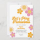 Um convite divertido para a sua próxima festa de piquete. Design apresenta flores retrógradas de ranhura realçadas com bolas de picles e as palavras "Jogar Pickleball de Vamos" em uma fonte divertida. Adicione facilmente todos os detalhes personalizados da sua parte e altere a cor de fundo. Excelente para festa de aniversário de picleball de um adulto ou criança, reunião de picleball de uma garota, fuga ou diversão diária. Pickleball - o melhor esporte de sempre!!