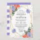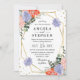 Elegante Boho Watercolor Laranja e Roxo Flores de primavera e design folhagem com estrutura geométrica dourada