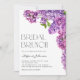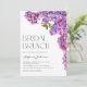 Convide convidados para o seu evento com este convite para brunch floral personalizável. Apresenta flores lilás púrpuras de aquarela. Personalize adicionando seus detalhes. Este convite para a noiva lilás é perfeito para chás de panela de primavera e inverno.