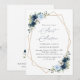 Convide amigos e família de estilo e dê o tom para o seu dia especial com este charmoso convite de aniversário. Design apresenta flores marinhos e azuis de cor d'água, tela verde e estrutura dourada sobre fundo branco.