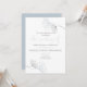Convite de Casamento Mínimo Chic, Flores simples desenhadas à mão feitas de pequenas pétalas em forma de coração que se parecem com o lugar da Rainha Anne em cinzas e azul empoeirado com letras de caligrafia