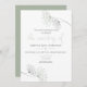 Convite de Casamento Mínimo Chic, Flores simples desenhadas à mão, feitas de pequenas pétalas em forma de coração que se parecem com o lugar da Rainha Anne na cinza e verde-claro-sábio com letra de caligrafia