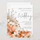 Flores Modernas de Outono, Código QR de Letra para Casamento. Adicione o seu código QR ao site do seu casamento no verso, o que torna esta uma opção conveniente para que os seus convidados respondam e vejam todos os detalhes sem a necessidade de cartões separados de RSVP e detalhes. Um conjunto de letra manuscrita para o casamento e o resto do texto que você pode facilmente personalizar. Flores de outono em tons de terracota, marrom e creme descem pelo lado esquerdo e atravessam a parte inferior e também estão no verso.