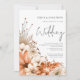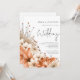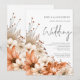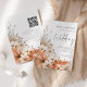 Florais Modernos de Outono Script Código QR Casamento. Adicione o seu código QR ao site do seu casamento no verso, o que torna esta uma opção conveniente para os seus convidados responderem e verem todos os detalhes sem a necessidade de cartões separados de RSVP e detalhes. Um conjunto de texto manuscrito para o casamento e o resto do texto que você pode facilmente personalizar. Florais em cores de outono em terracota, marrom e creme descem pelo lado esquerdo e atravessam a parte inferior e também estão no verso.