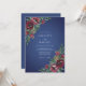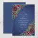 Flores vermelhas intensas acentuadas com folhagem verdejante adornam este impressionante design. O fundo azul-marinho profundo fornece uma tela sofisticada para o vibrante arranjo floral, evocando um senso de elegância romântica. Esta obra de arte apresenta peônias exuberantes e abundante folhagem.