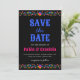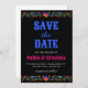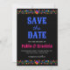 Celebre seu amor com este elegante e festivo, salve o cartão de data! Com um belo design floral inspirado no papel picado tradicional mexicano, este cartão é perfeito para um casamento de destino ou uma celebração temática de fiesta. O fundo preto cria um aspecto sofisticado e moderno, enquanto as cores vibrantes e os detalhes intrincados adicionam um toque de encanto tradicional.