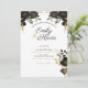 Convites Flores Negras RSVP Na moda modernas e elegantes pe