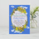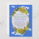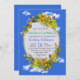 Flores amarelas cheias são uma obra-prima floral contra o céu primavera azul com borboletas todas num cartão para o casal de casamento.