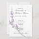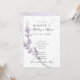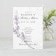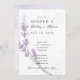 Primeiro aniversario elegante e convite batismo, com flores lavandas roxas de cor aquosa.