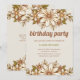Este convite de aniversário apresenta flores na moda retro e folhas em cores neutras vintage como marrom, bege, ouro, verde-oliva e creme de marfim com texto retrô. A parte traseira da placa tem um ponto para um código QR digitalizável para que os convidados possam facilmente rsvp. A maneira perfeita de convidar amigos e família para comemorar!