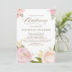 Convite fotográfico elegante e feminino batizante que inclui ilustrações desenhadas à mão com aquarela de peões rosa. Este convite personalizável será perfeito para eventos de primavera e jardim. Itens semelhantes e itens correspondentes estão disponíveis na minha loja.