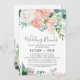 Este romântico de peônias floresce o convite de casamento é perfeito para um evento elegante. O design floral apresenta flores cor-de-água, cor-de-rosa-claro, cor de pêssego e branca em cascata.