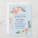 Este romântico de peônias floresce o cartão azul-claro de convite para casamento é perfeito para um casamento elegante. O design floral apresenta flores cor-de-rosa pincel, pêssego e aquarela branca com elementos geométricos falsos de rosa-ouro sobre fundo azul claro. Para obter mais opções de texto de convite para o casamento, consulte a coleção de casamentos de flores de pedras românticas: https://www.zazzle.com/collections/119651858051595378 Por favor, note que esta design não contém folha de ouro rosa. É um gráfico de alta qualidade feito para se parecer com um martelo de ouro rosa.