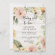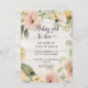 Formato vertical 5x7. "Rustic BOHO Pink Flowers Baby Girl para ser Chá Invitation." Anuncie a sua futura menina com este adorável e floral design de coroa de coroa BOHO, que contém espécimes de abelhões sobre um fundo de madeira branca de casaco mole. Rosas selvagens em amarelo-manteiga e cor-de-rosa-esbranquiçado com eucalipto verde-prateado e folhas verde-esfregona. Arte pintada em aquarela pela artista e designer internacionalmente licenciada, Audrey Jeanne Roberts, copyright.