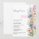 Um fundo branco, com uma grande cruz rosa decorada com flores rosa e azul. Personalize e adicione o nome e detalhes detalhes.