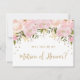 Placa "Will You Be My Matron of Honor", cor-de-rosa e floral dourada feminina