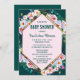 Falso moderno, elegante e feminino imprimiu flores cor-de-água cor-de-rosa pintadas em ouro e folhas em um fundo verde de jade esmeralda, Baby Shower Invtions. Este design clássico e sofisticado é perfeito para a mãe da classe, da moda e da na moda. Personalize com sua própria mensagem na frente e um monograma personalizado inicial no verso. Todas as impressão de fotos.
