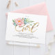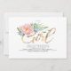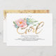 Flores cor-de-água rosa pinceladas e caligrafia dourada, convites para bebês