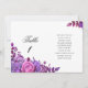 Convites Flores rosa e roxa. Gráfico de assentos de casamen