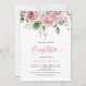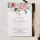 Este é um Convite Batismo para Flores Rosa Elegante Flores Verdes Folhas Verdes Folhas!