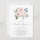 Este adorável convite para chás de casamento apresenta um buquê floral bonito, vintage, com flores e folhas cor-de-água rosa, poeirentas e verdes. Uma tipografia elegante, moderna, escrita à mão e um chic, cor-de-rosa claro, completam a aparência de na moda.