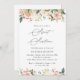 Convide amigos e família de estilo e dê o tom para o seu dia especial com este charmoso convite de aniversário. Design apresenta flores cor de água rosa e branca e verde sobre fundo branco.