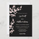 Este elegante convite para o casamento apresenta galhos cor-de-rosa/cor-de-rosa com flores de cereja num fundo preto.