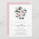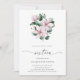 Dezesseis convites florais elegantes, com um buquê de flores cor-de-água pintadas de magnólia rosa e folhas de eucalipto, juntamente com "Dezesseis", em um roteiro delicado. A parte de trás é uma sombra coordenadora de rosa. Um adorável convite para 16 doces que é excelente para uma festa de primavera ou verão.