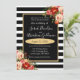 Convites Flores Rosas de Casamento Inv de Stripes Negra e B