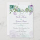 flores românticas, azuis e roxas, verdes folhas convite ao casamento