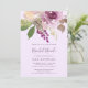 Estes adoráveis convites do Bat Mitzvah apresentam um buquê floral de cor d'água roxa com muitas folhas verdes em um fundo de lavanda macia. Escrita manual roxa e texto moderno combinam-se para uma aparência simples e elegante.