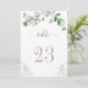 Convites flores roxas borboletas verdes número da mesa