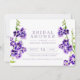 Bonito cor de água botânica da flor do céu brasileiro durante anta flores roxas bridal tomando banho antes dos convites para o casamento. Bonitos convites ideais para um chá de panela temático botânico roxo ou jardim tropical. © A pintura a aquarela original e design por Sarah Trett www.sarahtrett.com para www.mylittleedenweddings.com