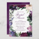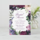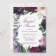 Flores de aquarela em tons de robusto rico, lilás suave, berinjela profundo e corante de orquídeas roxas e rosadas, com modernos botânicos verdes, tais como samambaias e eucalipto nestes convites de chá de panela românticos e elegantes.