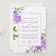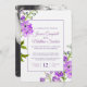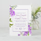Lindos picos de delfinium pintaram a arte botânica púrpura, mudando de cor da água do local, convite de casamento para jardins a céu aberto. Edite este convite de casamento com seu próprio nome, detalhes do evento, texto e noivado ou outra foto no verso ou remova a foto e tenha apenas um padrão de repetição floral. Outros itens de casamento correspondentes disponíveis. Design único e pintura de arte de aquarela original por Sarah Trett. www.sarahtrett.com para www.mylittleedenweddings.com