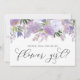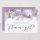 Peça à família e aos amigos que façam parte do seu casamento com este cartão floral roxo "Você será minha florista". Apresenta terra floral de cor d'água, rosas roxos poeirentos, peonias e margaridas. Personalize este cartão de proposta para florais, adicionando um nome e uma mensagem.