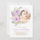 Convites Flores Roxas e Bebê Dourado Primeiro Aniversário