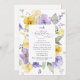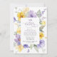 Convide amigos e família de estilo e dê o tom para o seu dia especial com este charmoso convite de aniversário. Design apresenta flores roxas e amarelas de aquarela e verde sobre fundo branco.