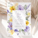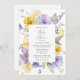 Convide amigos e família de estilo e dê o tom para seu dia especial com este charmoso convite para chás de fraldas. Design apresenta flores roxas e amarelas de aquarela e verde sobre fundo branco.