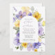 Convide amigos e família de estilo e dê o tom para o seu dia especial com este charmoso convite de aniversário. Design apresenta flores roxas e amarelas de aquarela e verde sobre fundo branco.