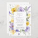 Convide amigos e família de estilo e dê o tom para o seu dia especial com este charmoso convite de aniversário. Design apresenta flores roxas e amarelas de aquarela e verde sobre fundo branco.
