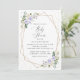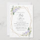 Convide amigos e família de estilo e dê o tom para seu dia especial com este charmoso convite para chás de fraldas. Design apresenta flores roxas e brancas de aquarela, verde, confete dourado e moldura dourada sobre fundo branco.