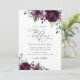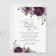 Convide amigos e família em estilo e dê o tom para seu dia especial com este encantador convite para o casamento. Design apresenta flores roxas de cor d'água plum e verde em fundo branco.